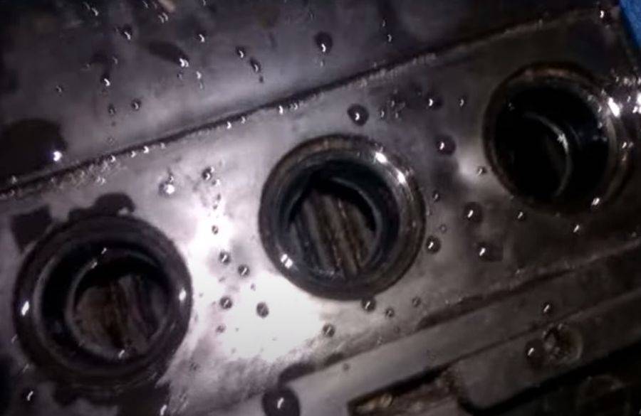 - пластины полностью скрыты жидкой средой, подтёки на внешней стороне корпуса отсутствуют – уровень в норме;