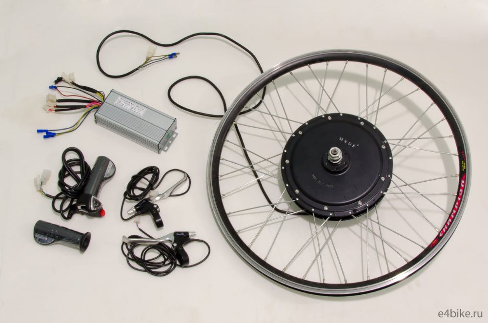 Все необходимые комплектующие часто продаются в готовых наборах, но вы можете подобрать их и самостоятельно. Конечно, установка готового комплекта произойдёт гораздо проще и быстрее. Учитывайте, что после установки всех элементов ваш велик станет тяжелее на 8–10 кг, поэтому отдавайте предпочтение деталям с меньшим весом.