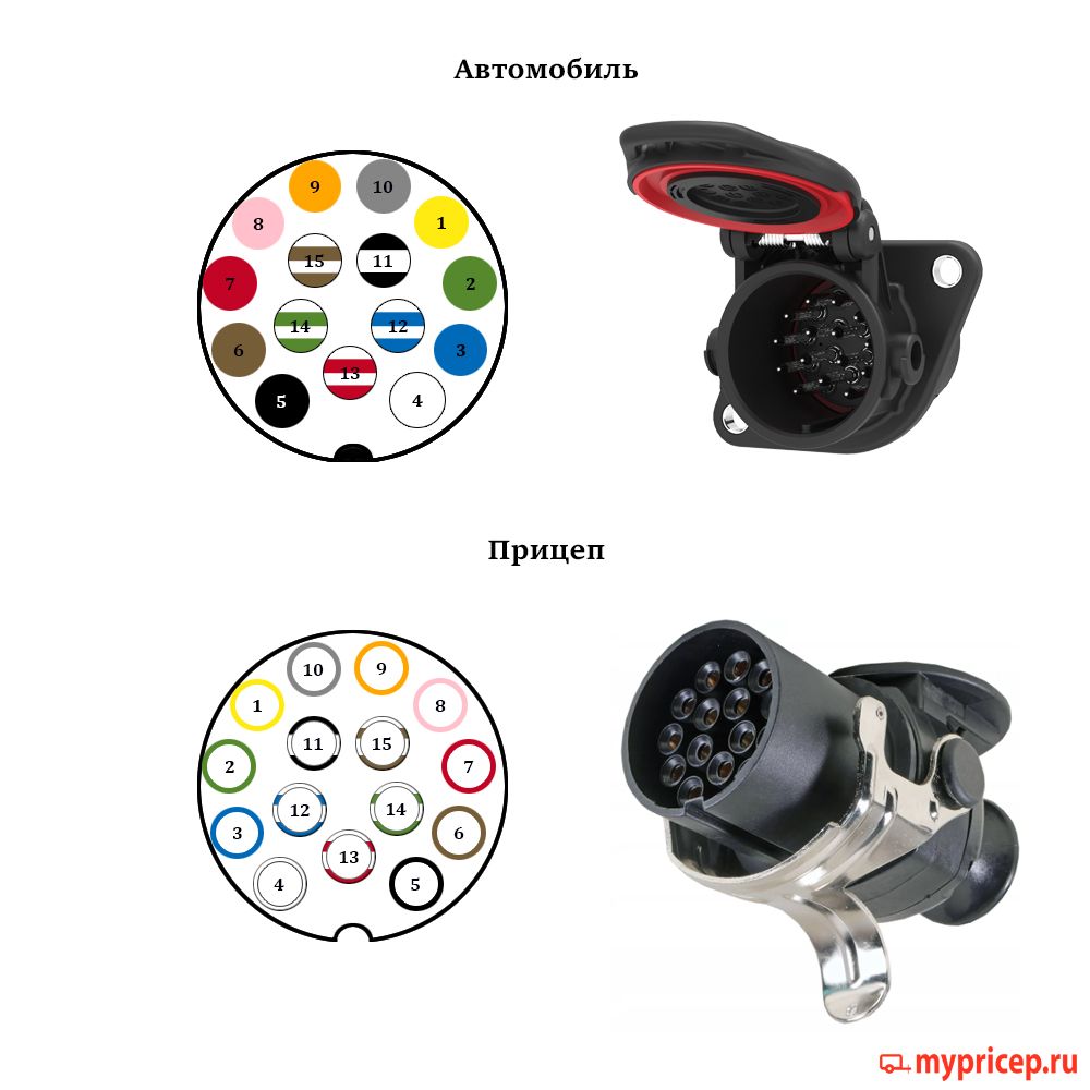 Распиновка 7 контактной розетки прицепа Евро и РФ