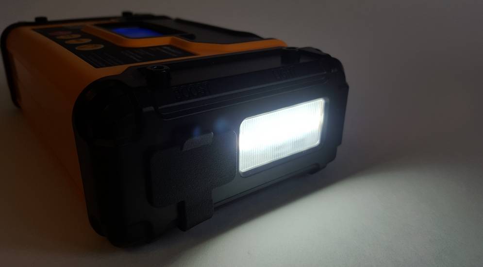 Устройство сумело произвести 17 краткосрочных запусков, при начальном напряжении 12,35 В. Бустер показал высокую мощность. Есть и ещё один плюс: хорошая работа защитной электроники – устройство автоматически отключается, когда его батарея разряжается на 60 %. Это позволяет не высасывать из неё все соки, что гарантирует более длительный эксплуатационный срок.