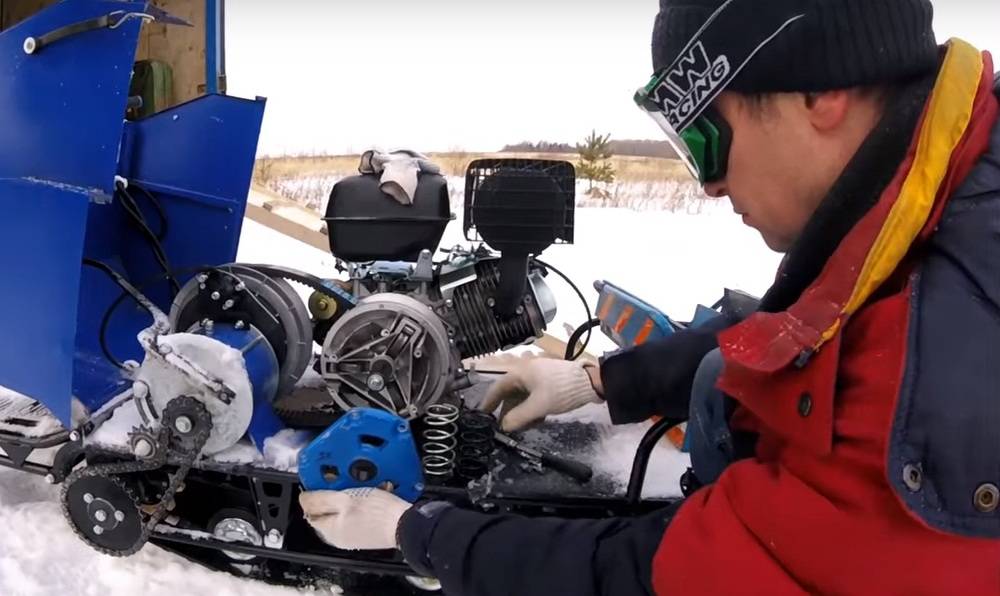 Как правило, некоторые клиенты, покупая мотобуксировщик, ничего о нем не знают. У них до этого не было этой техники — просто видели на рыбалке, как куча мужиков проезжает мимо. Человек загорелся идеей купить мотобуксировщик. Покупает, получает скоростной мотобуксировщик, у которого стоит звездочка на 13 зубьев и ремень 33-ий. Заводит, дергает, и он, чуть ли не отрывая руку, начинает от него убегать. Это, кстати, частая проблема с 33-ми ремнями.