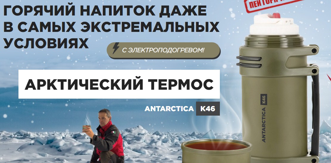 Уникальный арктический термос Antarctiva K46 , который сохраняет кипяток 7 дней в морозы до -55°c — убедиться лично и купить со скидкой: