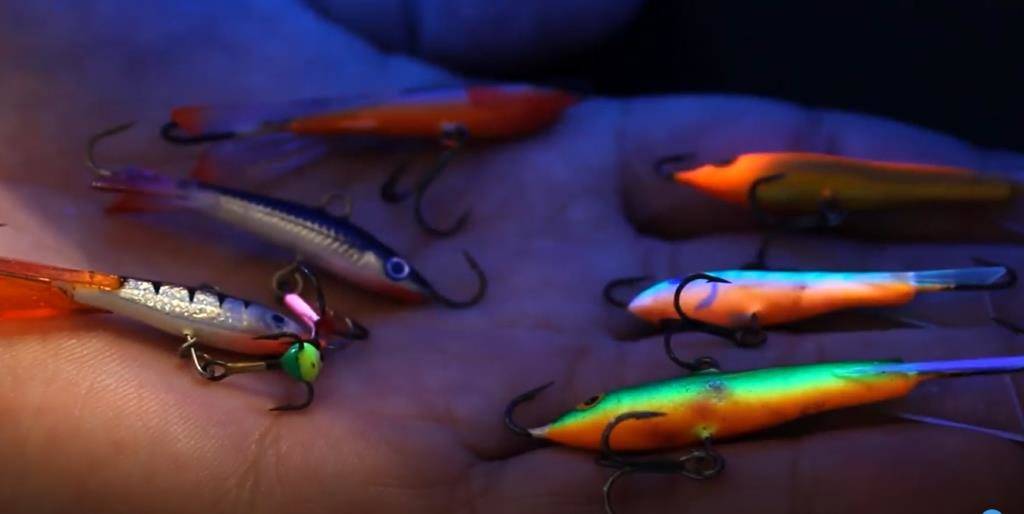 Техника ловли практически не отличается от дневной. Стоит лишь использовать флуоресцентные зимние приманки — блесны, балансиры и мормышки. А также активно играющие приманки в большем приоритете, чем пассивные.