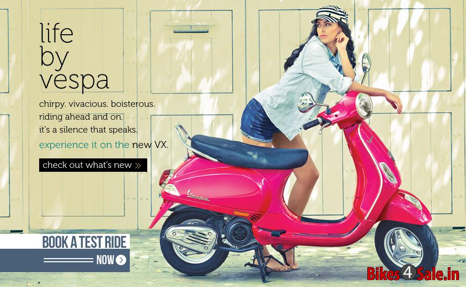 The Vespa VX 125 is nothing but a pro version of the Vespa LX 125. It additionally features a 200mm front disc, a reworked instrumentation cluster, beige seat option, and an attractive grab rail. Moreover, the all new VX 125 is also available in two new colors- Metallic Green and Pink.
