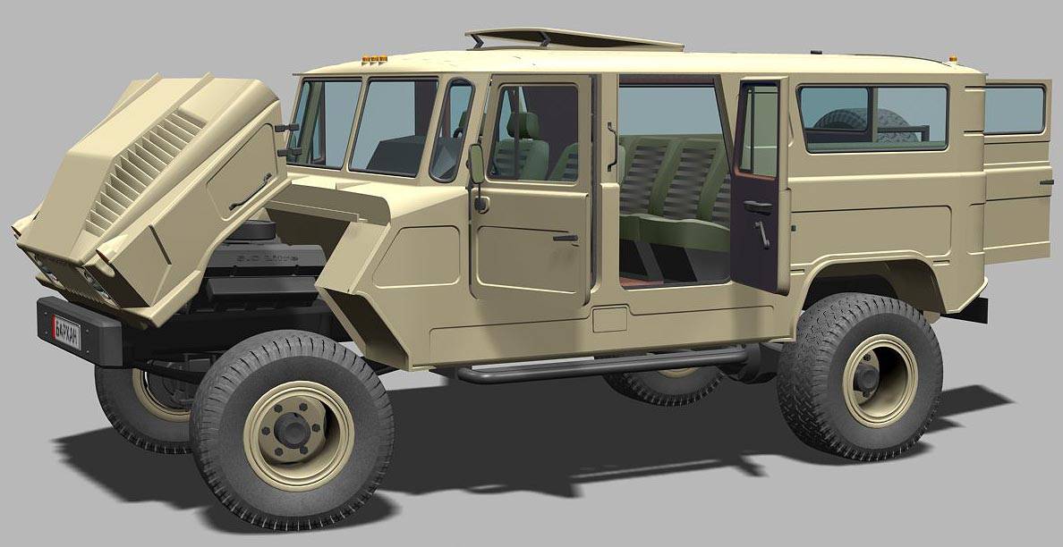 Большой «УАЗик» на десять персон… Так вкратце можно охарактеризовать эту нашу разработку :))… Действительно, машина по силуэту напоминает родного «козлика»… Кто-то сразу видит в нем «шестьдесят шестой», а кому может пригрезится и «Хаммер»… Но, это — «Бархан»!!!