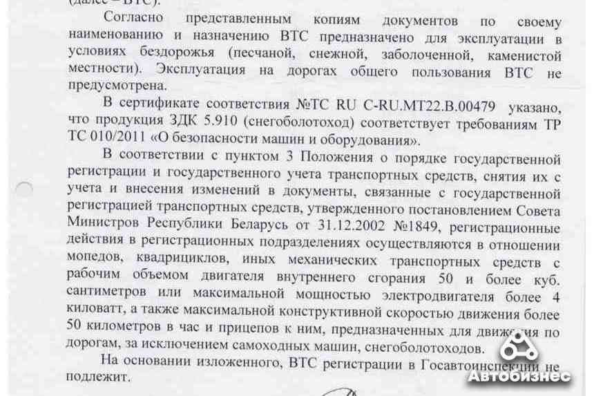 Для эксплуатации техсредства необходимо зарегистрировать вездеход в Ростехнадзоре и получить специальное разрешение.