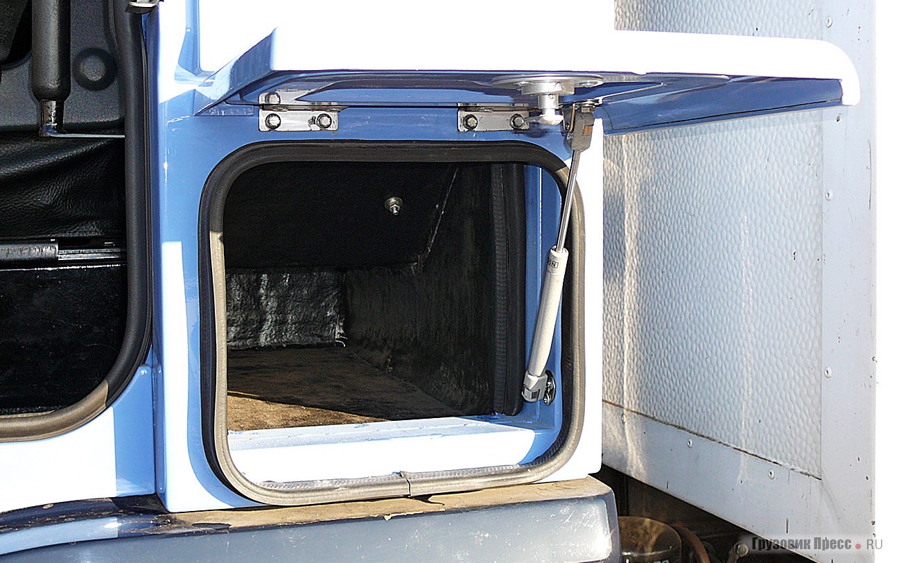 Хотя это уже была бы глупость: для этого по бокам кабины предусмотрены два небольших, но довольно удобных бокса с наружным доступом. Естественно, они запираются на ключ, вот только сможет ли личинка замка противостоять грязи? Для более ценных вещей есть два пенала под крайними сиденьями. Другие мелочи легко размещаются в карманах дверей, в большом перчаточном ящике перед крайним пассажиром справа или на полке над ветровым стеклом.
