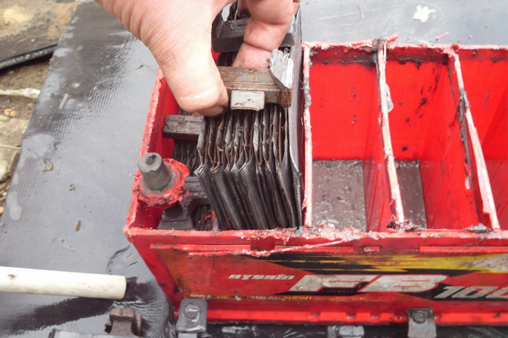 Далее заливается вода в банки, АКБ вновь переворачивается. Во время слива из банок выводятся остатки разрушенных пластин. Процедура повторяется несколько раз. После этого банки промываются проточной водой. Заливается электролит.