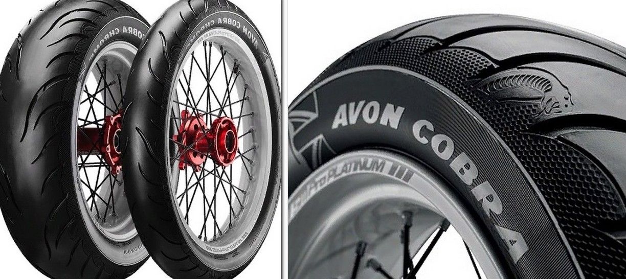 Две шины «COBRA CHROME» на ободах и выделенный элемент с изображением кобры