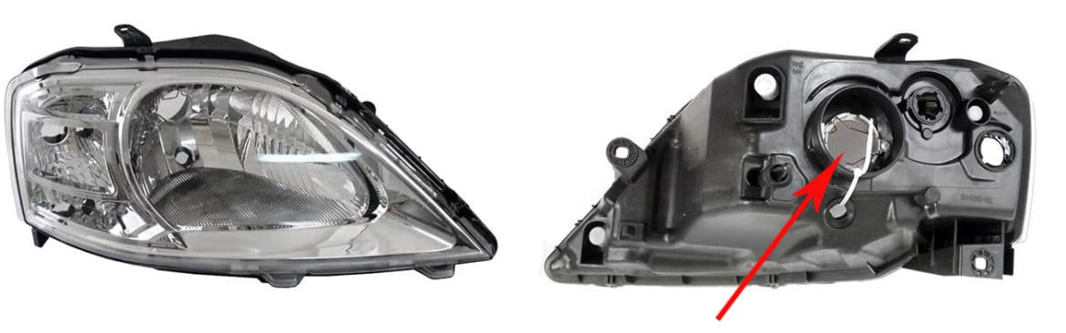 - На левой фаре поверните патрон по часовой стрелке, справа. против часовой стрелки и свободно снимите его;