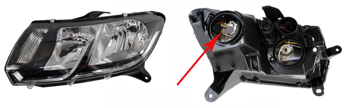 На Логане второго поколения дальний и ближний свет обеспечивают две раздельные лампы h7. Это позволяет оптимизировать работу светильников, поскольку часто возникает ситуация, когда из-за одной перегоревшей нити пользователю приходится выбрасывать одну рабочую и одну наполовину работоспособную лампу. Использование двух единиц имеет и отрицательные стороны — возрастают расходы на приобретение светильников, увеличивается нагрев внутри корпуса блок-фар.