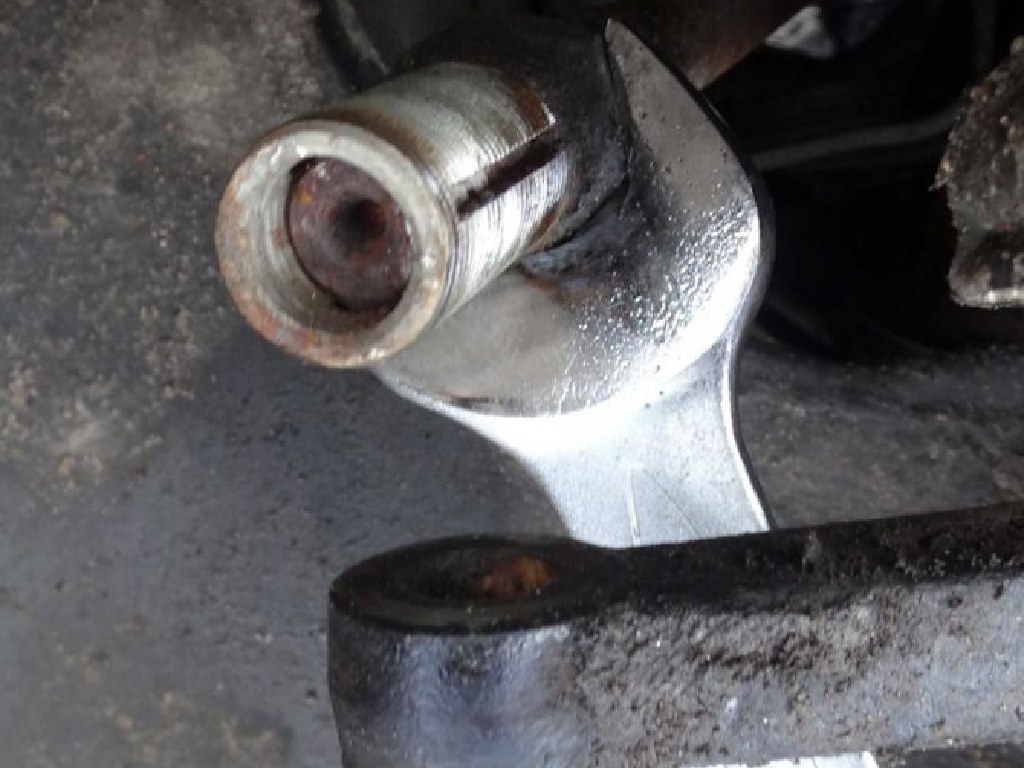 Следующим этапом будем отвинчивание самого наконечника с рулевой тяги. Для этого лучше использовать небольшой рычаг в виде трубки или торцевого ключа