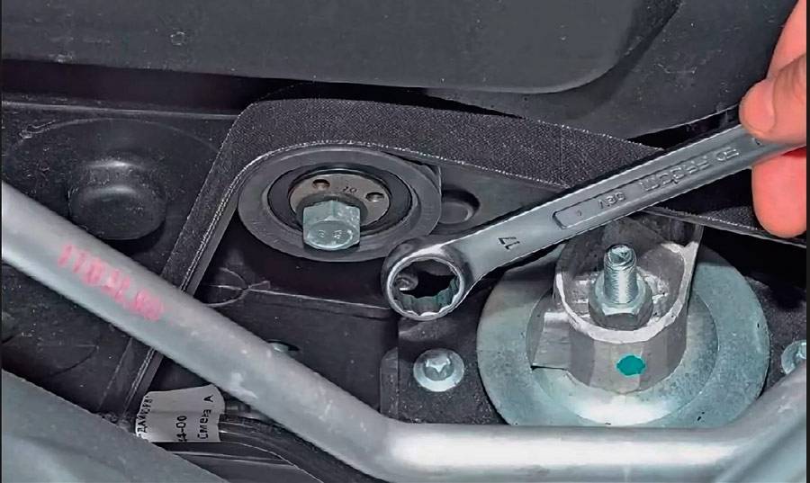 При снижении качества сцепления шкивов, роликов и поверхности ремня генератора следует увеличить натяжку. Также эту процедуру стоит провести, если расходник используется больше 15-20 тысяч км пробега, но при этом повреждения отсутствуют (замена не требуется). Если вы открыли капот и увидели потрепанную ленту, то сразу переходите к инструкции по замене, потом все равно придется его перетягивать. Для проведения работы понадобится специальный ключ для ролика и стандартные ключи на 19 и 17.
