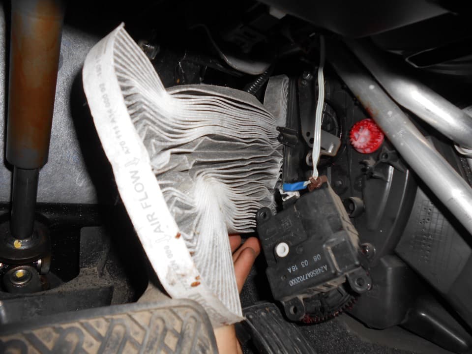 Так заслонка кондиционера принимает максимально открытое положение и обеспечивает доступ к салонному фильтру, а точнее, к корпусу, где он находится. Можно продолжать демонтаж.