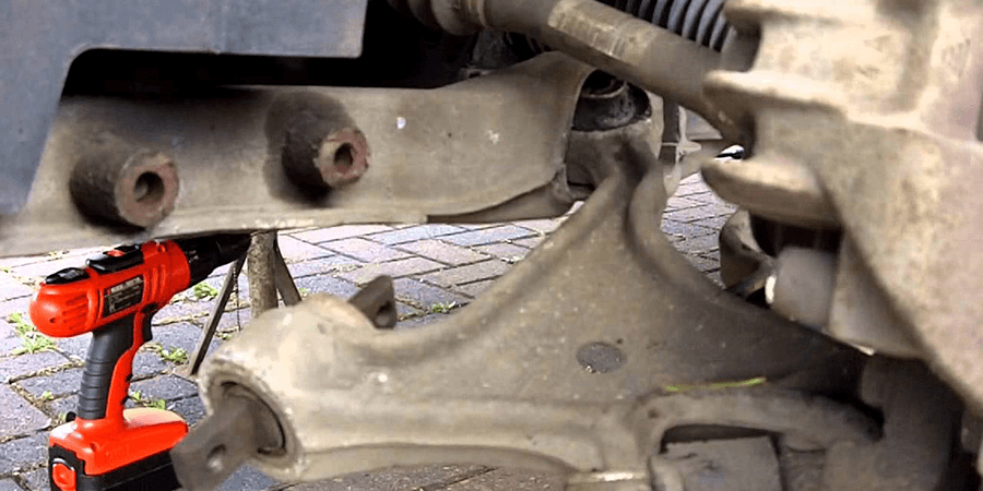 - Потребуется помощь напарника, для этого потребуется яма: в машину садится человек, в это время второй затягивает болты крепления рычага к подрамнику. В этом случае сайлентблоки будут закреплены правильно, то есть под среднестатистической нагрузкой.