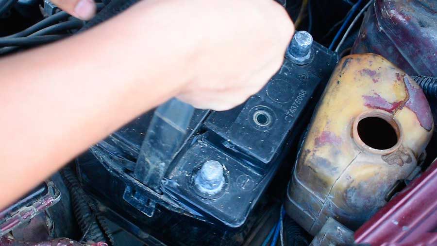 - Выключите зажигание, вытащите ключ из замка, отключите всех потребителей. Теперь можно полностью снять АКБ с машины, либо просто отключить клеммы.
