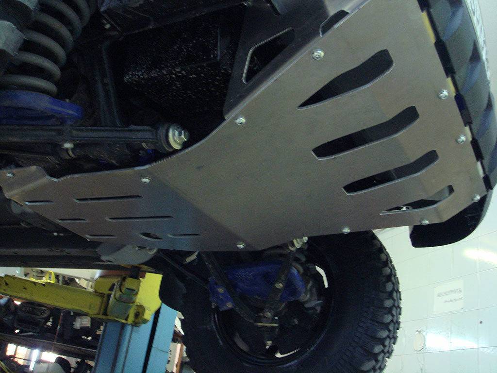 - Алюминий. В отличие от стали, на алюминиевой защите не штампуют ребер жесткости, однако это не мешает ей составить достойную конкуренцию стали, вес которой значительно выше, чем у алюминия. Стоит алюминиевая защита достаточно дорого.